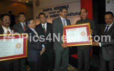 Photo Caption : Ghulam Nabi Azad Union Minister for Health and Family Welfare seen presenting AAHRPP (Association for Accreditation for Human Research Programme) certificates to Manipal Hospital of Bangalore and Kasturba Hospital of Manipal at Hotel Chancery Pavilion also seen SC Nagendra Swamy, President & Chairman Quality, Manipal Health Enterprises, Dr H Sudarshan Ballal, Medical Director, Manipal Health Enterprises, Rajen Padukone, CEO, Manipal Health Enterprises, and others, in Bangalore on Monday 6th February 2012