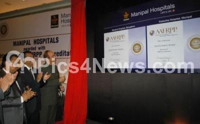 Photo Caption : Ghulam Nabi Azad Union Minister for Health and Family Welfare seen inaugurating a programme to present AAHRPP (Association for Accreditation for Human Research Programme) certificates to Manipal Hospital of Bangalore and Kasturba Hospital of Manipal at Hotel Chancery Pavilion also seen SC Nagendra Swamy, President & Chairman Quality, Manipal Health Enterprises, Dr H Sudarshan Ballal, Medical Director, Manipal Health Enterprises and others, in Bangalore on Monday 6th February 2012