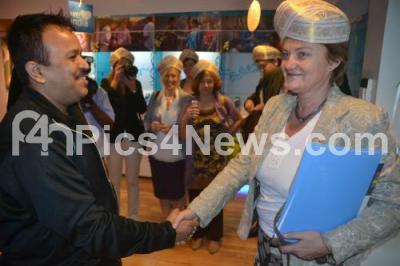 Photo Caption : Norwegian Minister for ICT Rigmor Aasrud being welcomed at UNINOR Store in Koramangala during an interaction programme with customers, in Bangalore on Tuesday 7th February 2012