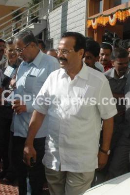 Photo Caption : Chief Minister DV Sadananda Gowda along with Minister S Suresh Kumar coming out of BJP Office Malleshwaram after accepting the resignations of three BJP Ministers who were caught watching porn video on a cell phone in the Karnataka State Assembly yesterday, in Bangalore on Wednesday 8th February 2012
