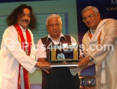 Photo Caption : Shri Shri Nimishanda with NV Raghuram, Chairman, Yogabharathi, California USA and N Ramanuja, Chairman, Bharathiya Vidhya Bhavan seen at the launch of book "Between You & Me Meditation Made Simple†authored by Shri Shri Nimishanda at Bharathiya Vidhya Bhavan, in Bangalore on Wednesday 8th February 2012