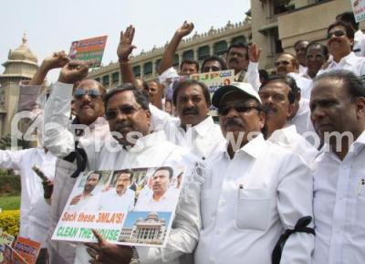 Congress MLAs Protest against Three Former BJP Ministers