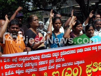 Photo Caption : CPIM members protest against the BJP government and the three tainted former BJP ministers, the protest was held SBM circle, in Bangalore on Friday 10th February 2012