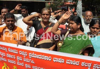 Photo Caption : CPIM members protest against the BJP government and the three tainted former BJP ministers, the protest was held SBM circle, in Bangalore on Friday 10th February 2012