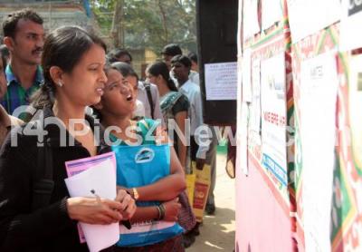 Photo Caption : Candidates looking for some good jobs on the notice board at the Udyoga Mela 2012 at Sirur Park play ground in Sheshadripuram, in Bangalore on Friday 10th February 2012