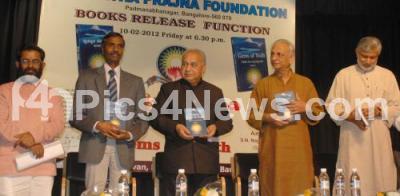 Photo Caption : Dr M Ramajois, Former DGP Ajay Kumar Singh, Former DGP Neelam Achyutha Rao and MI Agarwal seen at the release of "Gems of Truth" book at Baratiya Vidya Bhavan organised by Samartha Prajna Foundation, in Bangalore on Friday 10th February 2012