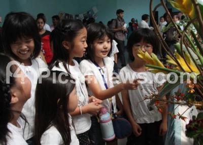 Photo Caption : Japanese children excited at the Japan exhibition at the Japan Habba 2012, supported by Indo Japanese Chamber of Commerce and Industry, Karnataka at Gnana Jyothi, in Bangalore on Sunday 19th February 2012