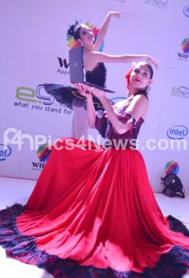 Photo Caption : Russian ballet dancers pose with the newly launched Wipro Ego Aero Ultrabook during a launch programme at Hotel Chancery Pavilion, in Bangalore on Tuesday 21st February 2012