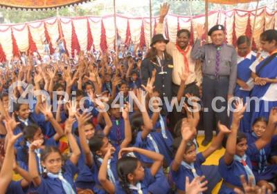 Photo Caption : Kondaji B Shanmukhappa, State Chief Commissioner, Bharath Scouts and Guides, Karnataka with IR Perumal, Principal Secretary, Dept of Youth Services and Sports and others seen along with scouts and guides children celebrating Thinking Day, World Brother Hood and Sister Hood Day at Palace Road organised by Bharath Scouts and Guides, Karnataka and Dept of Youth Services and Sports, in Bangalore on Tuesday 22nd February 2012