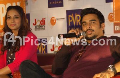Actors Bipasha Basu and Madhavan seen during promotional event of their upcoming film “Jodi Breakers” at Forum Mall, in Bangalore on Tuesday 22nd February 2012