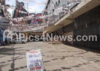 Theatres in Majestic area seen closed as Karnataka Film Chamber of Commerce (KFCC) called for one day bundh of theatres all over Karnataka in a protest against Central Govt decision to impose service tax on film industry, in Bangalore on Thursday 23rd February 2012