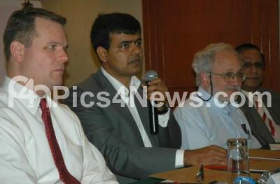 Photo Caption : Kumar Prabhas, Managing Director, Unisys India with Bob Supnik, Chief Technology Officer, Unisys Technology Consulting & Integration Solutions (TCIS) and LNV Samy, Vice President, TCIS Services and others seen addressing during a press conference to announce the winners of Cloud 20/20 online paper technical paper contest, press conference held at Hotel Chancery Pavilion, in Bangalore on Tuesday 23rd February 2012