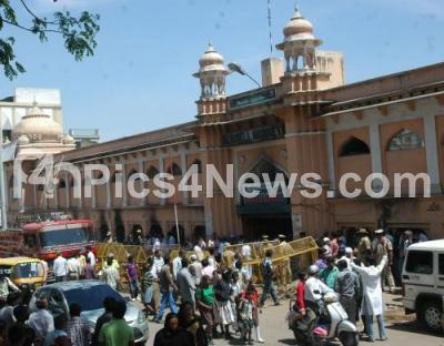 Photo Caption : Crowd gathered at Russell Market in Shivajinagar where shops were burnt after fire caught early morning in the market due to electric short circuit, in Bangalore on Saturday 25th February 2012