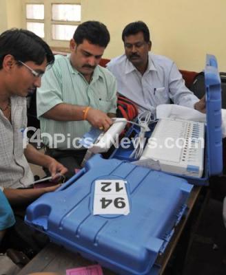 Elections officials making preparations and arranging EVMs (electronic voting machines) for Gandhinagar ward BBMP by poll at Corporation School in Gandhinagar, in Bangalore on Saturday 25th February 2012