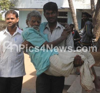 Photo Caption : An elderly man being carried by her relatives for casting his vote for the Gandhinagar Ward BBMP by poll elections as the police keep a strict vigilance near poling booths near Kino Theatre, in Bangalore on Sunday 26th February 2012