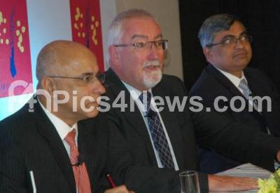 Photo Caption : Dr Albert Hieronimus, Chairman, MinTree Limited with Subroto Bagchi, Vice Chairman, MindTree Ltd and Krishnakumar Natarajan, CEO and MD MindTree Ltd addressing a press conference of MindTree financial results of Mindtree at a Press Confernce at The Park Hotel, in Bangalore on Wednesday 29th February 2012