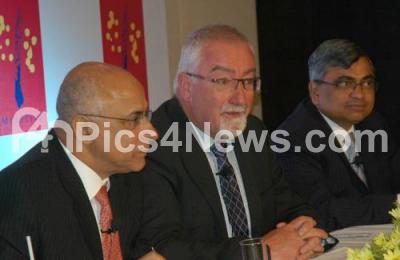 Photo Caption : Dr Albert Hieronimus, Chairman, MinTree Limited with Subroto Bagchi, Vice Chairman, MindTree Ltd and Krishnakumar Natarajan, CEO and MD MindTree Ltd addressing a press conference of MindTree financial results of Mindtree at a Press Confernce at The Park Hotel, in Bangalore on Wednesday 29th February 2012