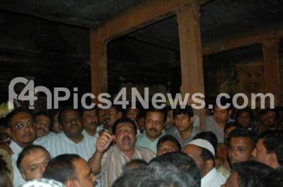 Event Description : HD Kumarswamy with Cheluvarayaswamy, Zameer Ahmed Khan, MLA and other JDS leaders visited the Russell market in Shivajinagar which was destroyed due to fire last week, in Bangalore on Sunday 4th March 2012