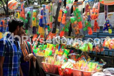 Event Description : People seen buying colors, water guns and various other things related to holi festival at malleswaram, in Bangalore on Tuesday 6th March 2012
