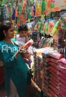 Photo Caption : People seen buying colors, water guns and various other things related to holi festival at malleswaram, in Bangalore on Tuesday 6th March 2012