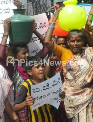 Event Description : Residents of Basaveshwara Nagar and Members of Indian Youth Congress protesting for water scarcity against BJP Government, in Bangalore on Wednesday 7th March 2012