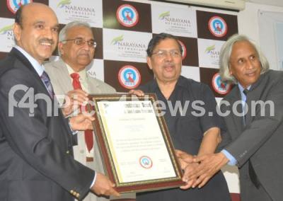Event Description : Dr K Bhujanga Shetty, CMD, Narayana Nethralaya, Prof Venkatesh Thuppil, Principal Advisor, Quality Council of India, Dr Giridhar J Gyani, CEO, NABH and Justice N Santosh Hegde presenting National Accreditation for Hospitals and Healthcare Providers (NABH) to Narayana Nethralaya at Rajaji Nagar, in Bangalore on Wednesday 7th March 2012
