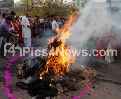 Photo Caption : People celebrating Holi by Performing a Pooja, in Mysore on Wednesday 7th March 2012