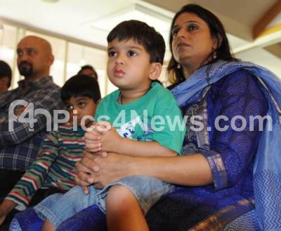Photo Caption : Vijeta Dravid, wife of Rahul Dravid and their sons Samit and Anvay seen duirng the Indian Cricketer Rahul Dravid, announced his retirement from Test cricket, who had already retired from one day and Twenty20 cricket, seen at a press conference in M Chinnaswamy stadium, in Bangalore on Friday 9th March 2012