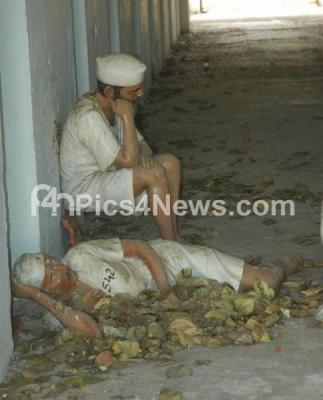 Photo Caption : Bad state of affairs seen at Old Central Jail as the dust is gathered all over the Idols of prisoners and is maintained very poorly, will the authorities get this place cleaned, in Bangalore on Saturday 10th March 2012