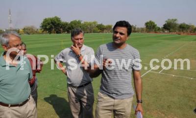 Photo Caption : KSCA Secretary Javagal Srinath explaining about the new cricket ground with former International cricketer Roger Binny and others as the international class cricket ground is been Inaugurated tomorrow ,in Mysore on Saturday 10th March 2012