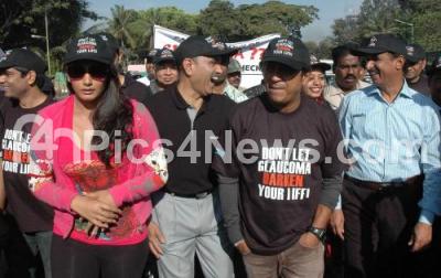 Event Description : People campaigning to drive awareness on GLAUCOMA, the second largest cause of blindness, on the occasion of world Glaucoma Week organised by Glaucoma Society of India, with luminaries like hat trick star Shivraj Kumar, City Police Commissioner Jyothi Prakash Mirji and leading eye specialists Bhaujan Shetty from Freedom park to Mahatma Gandhi Statue on MG Road, in Bangalore on Sunday 11th March 2012