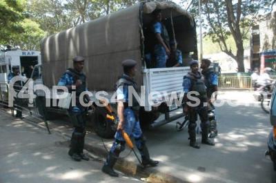 Event Description : Rapid action force lined up for precautionary measures near City Civil Court for the riots happened on 2nd march, in Bangalore on Monday 12th March 2012