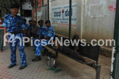 Photo Caption : Rapid Action Force seen near City Civil Court for the Riots that happened on 2nd march 2012, in Bangalore on Tuesday 13th March 2012