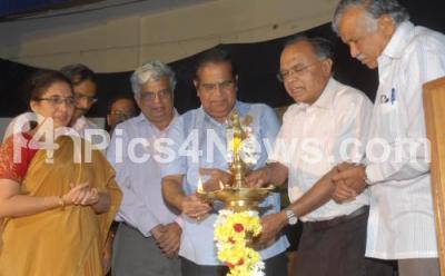 Photo Caption : Dayananda Pai, Prof KE Radakrishna, Tejaswini Anantkumar and others seen lighting lamp at the Nadoja Prof G Venkatasubbaiah Janmashatabdi Swagata Samiti programme at Jayanagar, organised by Sri Jayarama Seva Mandali, in Bangalore on Thursday 15th March 2012