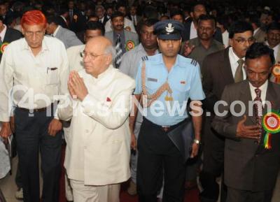 Photo Caption : HR Bhardwaj, Governor of Karnataka arriving for 11th state level conference of for Karnataka state Prosecuting officers Association and Department of Prosecutions and government litigations at Hotel Bell, in Bangalore on Saturday 17th March 2012