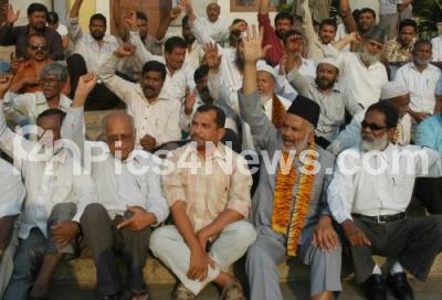 Photo Caption : People protesting to fulfill their demands at Townhall, in Bangalore on Monday 19th March 2012