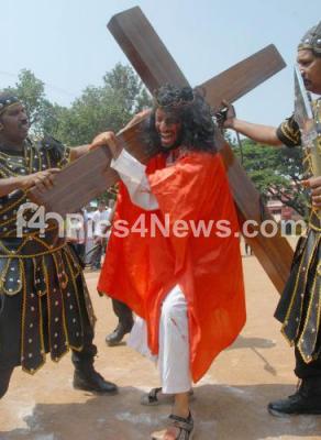 Photo Caption : Tyrone Menezes, Student enacting the crucifixion of Jesus Christ on the occasion of Good Friday at Lady of Lourdes Church, Ulsoor, in Bangalore on Friday 6th April 2012