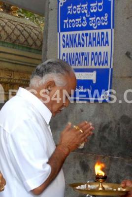 Photo Caption : CM, BS Yeddyurappa offering prayer before attending Assembly Session at Ganesha Temple, in Bangalore on Monday 19th Nov 2007 Pics: www.pics4news.com