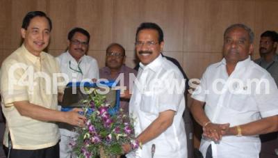 Event Description : Dr William D Dar, Director General, ICRISAT exchanging MoU with DV Sadananda Gowda, Chief Minister while signing of MoU between GOK and CGIAR Centers, also seen Umesh Katti, Minister at Vidhana Soudha, in Bangalore on Wednesday 6th June 2012