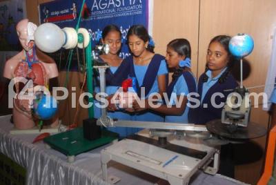 Photo Caption : Students displaying their projects at the Exhibition in Vignana Yathre Programme, organized by Intel at Shikshakara Sadhana, in Bangalore on Wednesday 27th June 2012