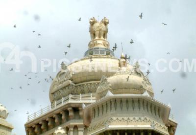 Pigeons flying on top of the Vidhana Soudha, in Bangalore on Wednesday 14th May 2008.