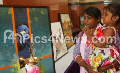 Photo Caption : Visitors seen at Arts Exhibition, organized by Karnataka State Chitrakala Shikshakara Assocition at Nayana, in Bangalore on Monday 9th July 2012
