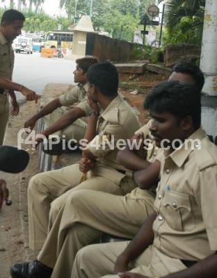 Event Description : Police Officials seen outside Jagadish Shetter, newly appointed Chief Ministers Residence, in Bangalore on Monday 9th July 2012