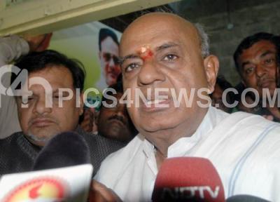 Photo Caption : HD Devegowda, Former Prime Minister addressing media after JDLP Meeting at JDS Party Office also seen Meerajudin Patel, JDS State President, in Bangalore on Monday 19th Nov 2007 Pics: www.pics4news.com
