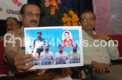 Photo Caption : Jyothi Parakash Mirji, Police Commissioner seen displaying the culprits responsible for the recovered property parade at Wilson Garden Police Station, in Bangalore on Wednesday 8th August 2012