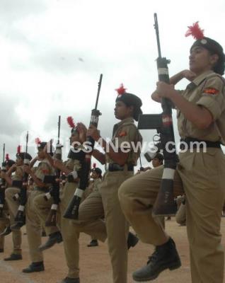 Photo Caption : NCC candidates seen participating in March Fast rehearsals for upcoming Independence Day Parade at Manekshaw Parade Grounds, in Bangalore on Sunday 12th August 2012