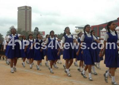 Photo Caption : School children seen participating in March Fast rehearsals for upcoming Independence Day Parade at Manekshaw Parade Grounds, in Bangalore on Sunday 12th August 2012