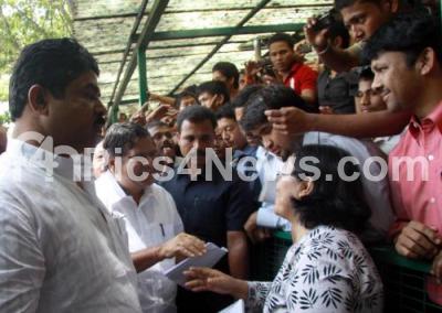 Photo Caption : Jagadish Shettar, Chief Minister seen with R Ashok, Deputy Chief Minister interacting with Northeast Indians on the Assam Riots Issue at Home Office, Krishna, in Bangalore on Thursday 16th August 2012