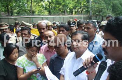 Photo Caption : Jagadish Shettar, Chief Minister seen with R Ashok, Deputy Chief Minister addressing Northeast Indians on the Assam Riots Issue at Home Office, Krishna, in Bangalore on Thursday 16th August 2012