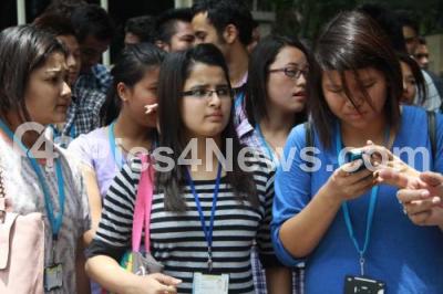 Photo Caption : Northeast Indians seen waiting for Jagadish Shettar, Chief Minister for the meet on the Assam Riots Issue at Home Office, Krishna, in Bangalore on Thursday 16th August 2012